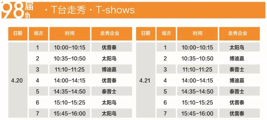 小编特意为您送上活动日程与T台走秀时间表