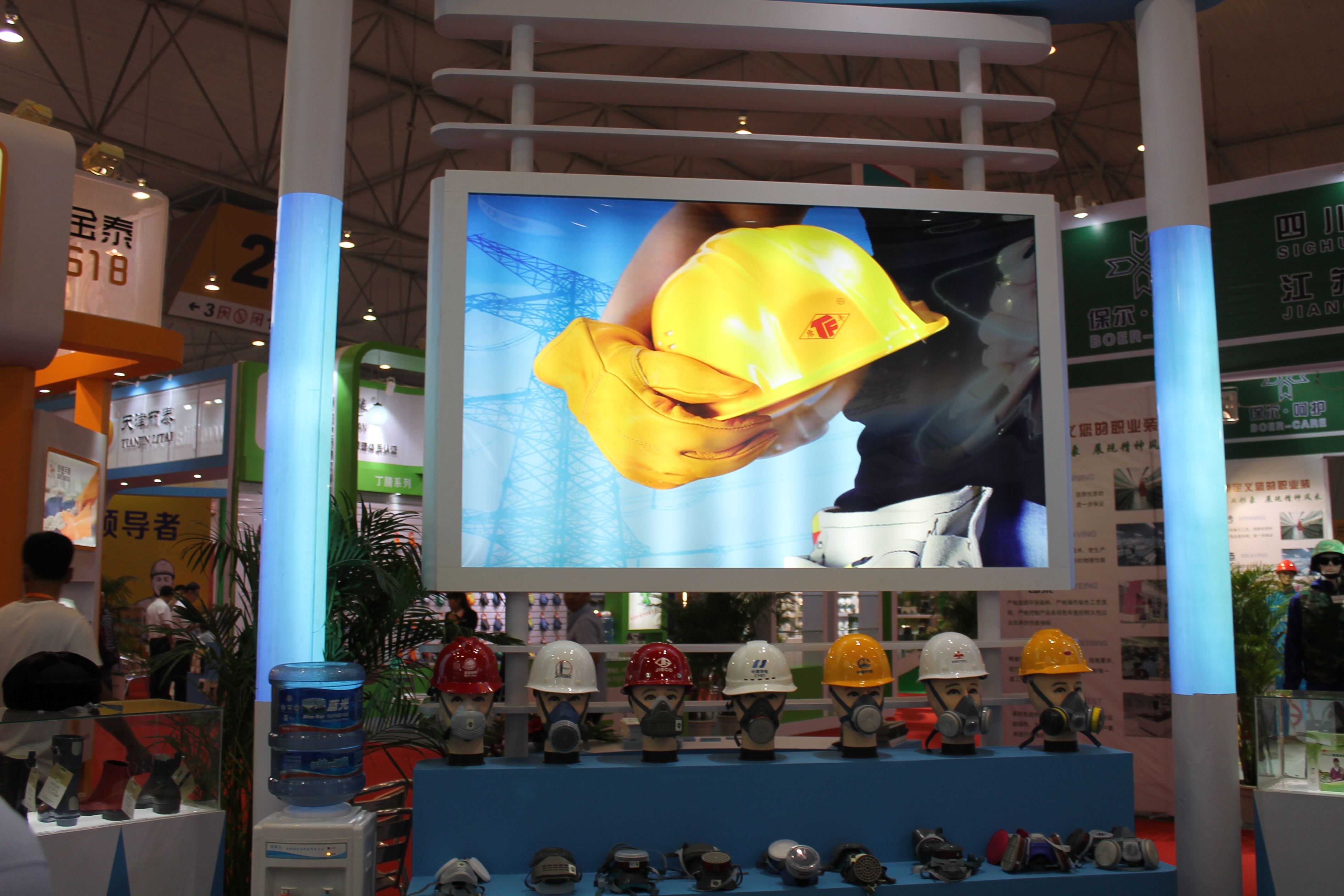 参展产品:安全帽、自吸过滤式防颗粒物呼吸器、防毒全面罩、半面罩、胶靴类