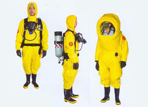 重型防化服的颜色多是标准的黄色,而轻型防化服是橘红色。