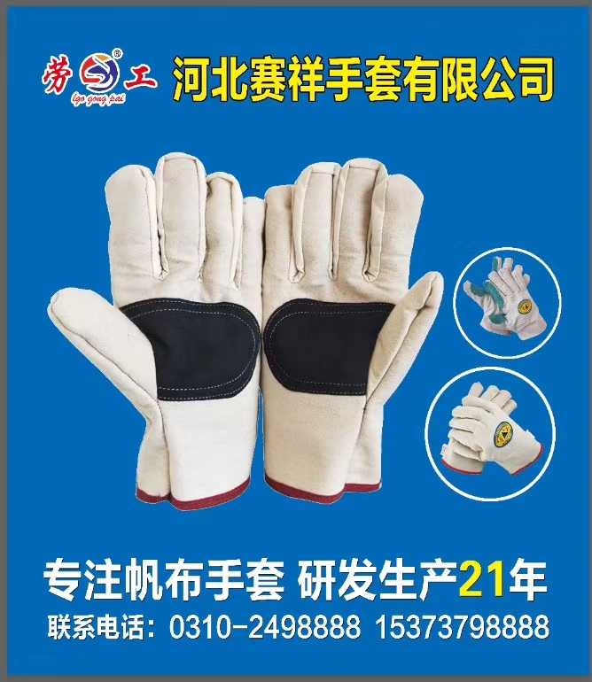 河北赛祥手套有限公司在市政府指定劳保制造商业圈内、中国纺织品商业协会理事单位,邯郸冀南新区劳保协会会长单位,中国石油二级供应商,一般纳税人企业,检验报告,营业执照等证照齐全,专业生产帆布手套及定制各类手套,公司注册资金500万元,公司位于邯郸冀南新区西光录村,紧邻107国道、交通十分便利,公司前身为《邯郸市赛祥劳保制品有限公司》成立于1999年3月,我公司生产的帆布手套质量可靠、价格合理、供货及时、我公司在业界信誉度良好、我们的团队和专业技术给客户带来了很大的利润空间,公司生产的《劳工牌》帆布手套是国内知名品牌、有良好的生产及销售基础,常年供不应求,2018年我公司先后在新疆成立三个分公司,现拥有专业特种生产设备200余台,电脑缝纫设备2500余台,日产成品手套15万余双,现已有完善的售后服务体系,诚招全国空白地区代理商,赛祥手套全体员工热枕欢迎各界劳保同仁到公司考察指导工作!