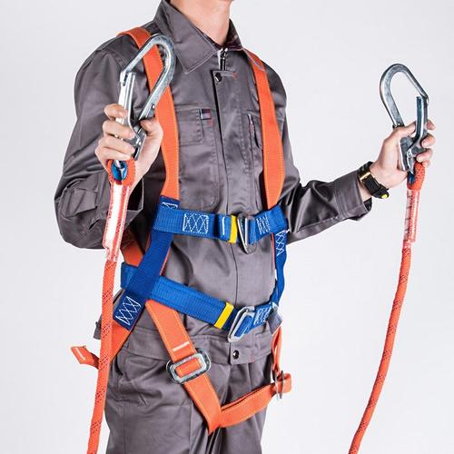 6.不能将安全带打结使用,以免发生冲击时安全绳从打结处断开,应将安全挂钩挂在连接环上,不能直接挂在安全绳上,以免发生坠落时安全绳被割断。