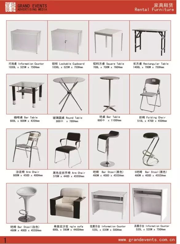 标摊的基本配备的是一张桌子,两把椅子,两个射灯,一个插座。如果您需要更多展具,要在3月29日前租赁,超过这个时间的订单将加收50%加急费。