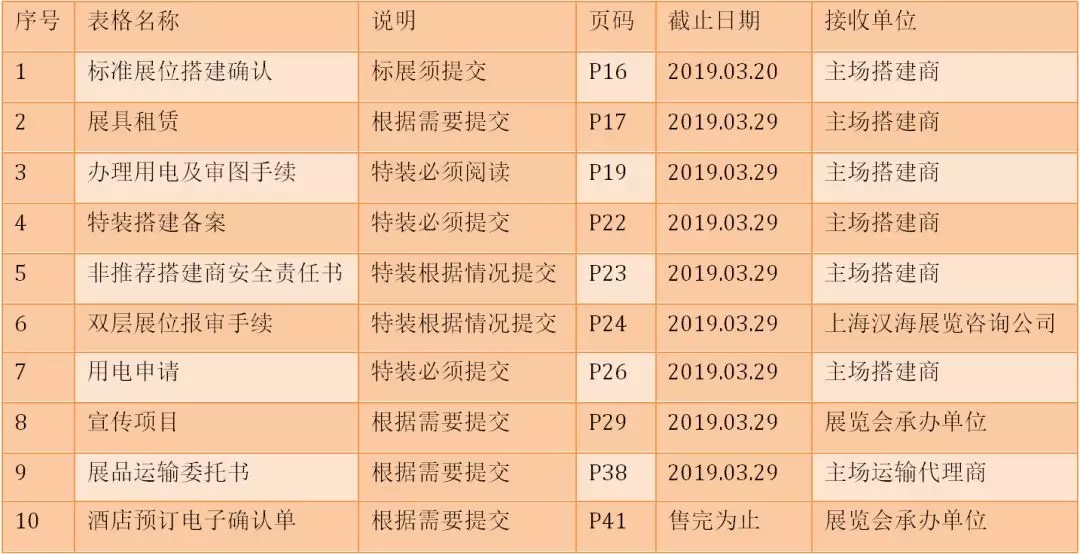 一本厚厚的手册,包括本届展览会的基本信息、注意事项、业务指引、搭建与布展相关事宜、展具租赁服务、宣传服务、交通信息、酒店住宿服务、展品运输服务等等。大家一定要耐下心来,好好阅读。