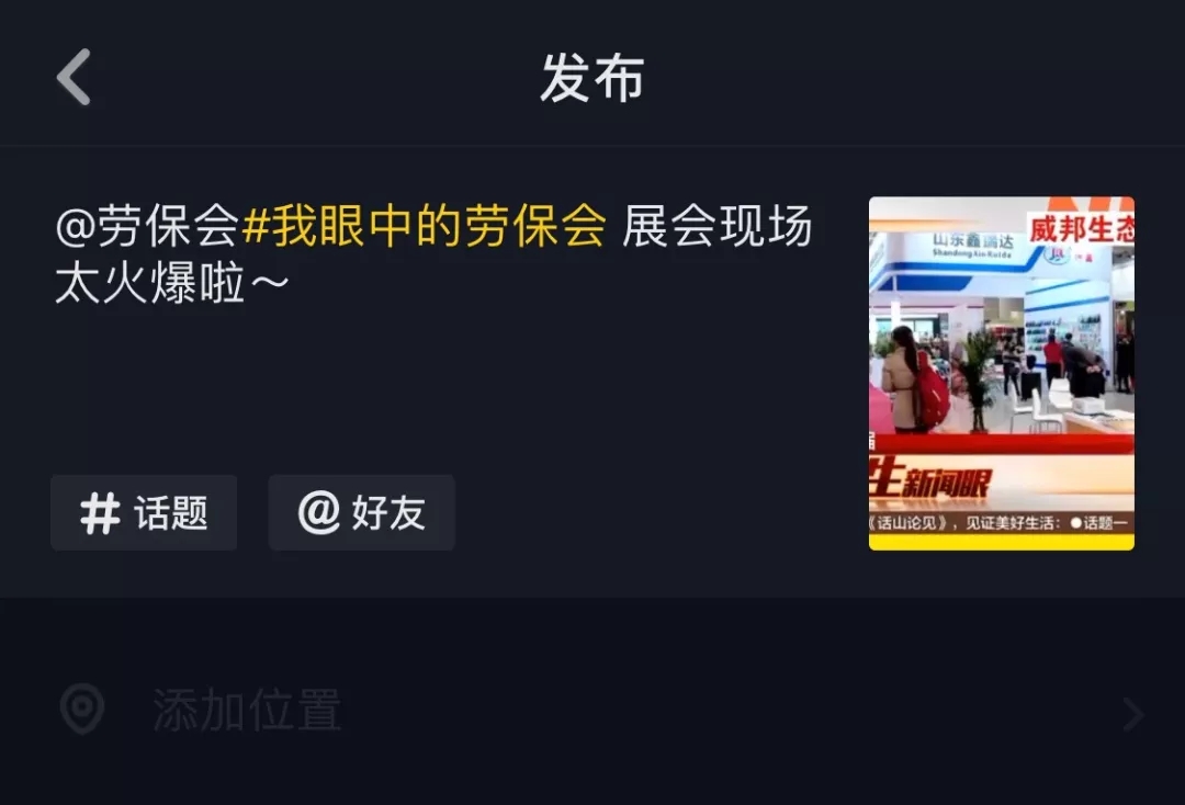 4.在文字描述中先@w98威九国际,添加话题#我眼中的w98威九国际,并描述视频所拍情景,发布视频即可
