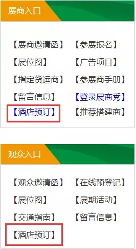 ②登录“中国劳动保护用品交易会”官网www.ciosh.com,点击左下角“酒店预订”,进入后按提示操作即可。(预订成功后请保存订单号,凭订单号办理入住)